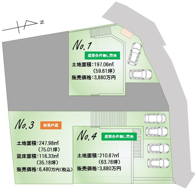 | 土地面積 | 197.06㎡(59.61坪)~247.98㎡(75.01坪) | ||